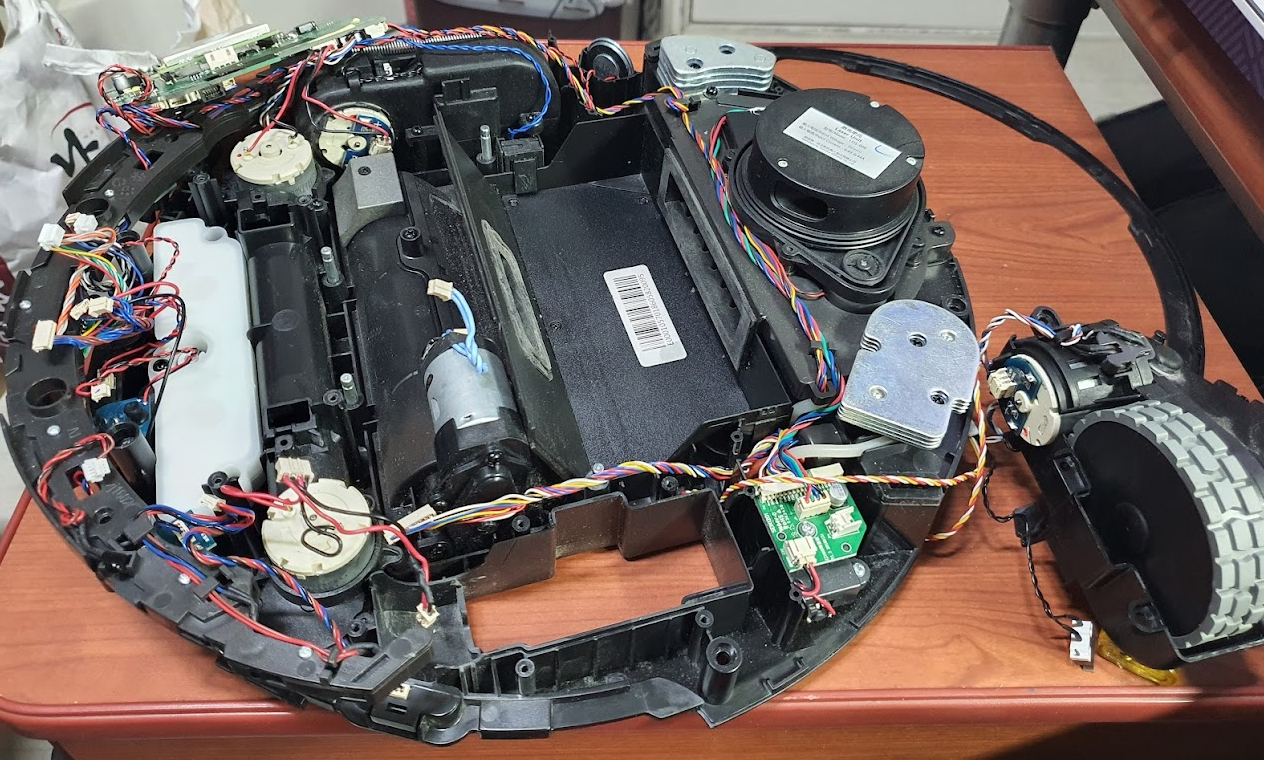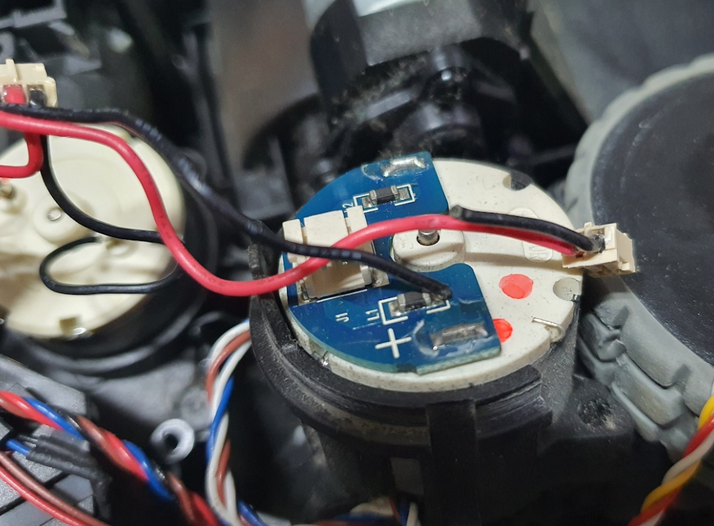 일단 뜯었다. 전원을켜고 청소를 시작하면 오른쪽 바퀴는 도는데 왼쪽 바퀴가 돌지 않는다.