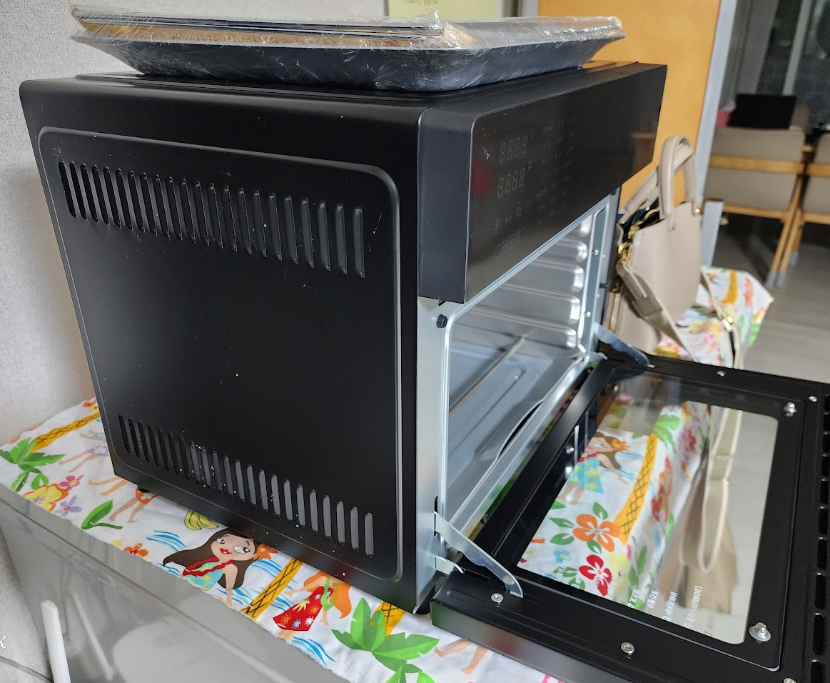 기존에 사용하던 에어프라이어는 뜨거운바람이 뒤로 나와 창문을 열고 사용을 했었지만 같은위치에 제품을 두더라도 바람의 방향이 위를 향해 창문을 열지 않고 사용이 가능하다.